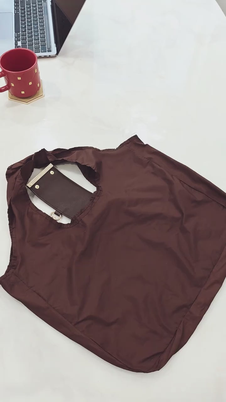 When folded, this tote bag is super compact and easily clips onto your keychain, purse, or backpack. It's designed to fit seamlessly into your everyday life without taking up much space at all.